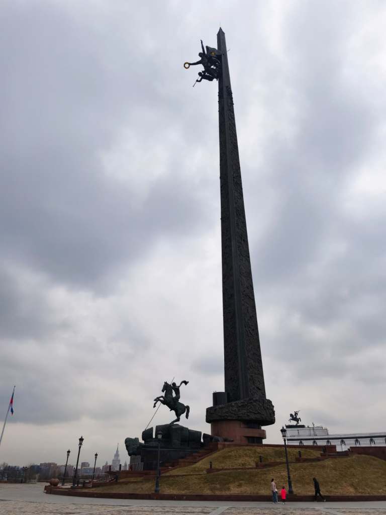 Towards the end of my trip, it was time for the main course: Victory Park, the Victory Museum, and the surrounding museums filled with Soviet and German tanks, aircraft, and other military equipment. This is the spot, I am not sure about historical accuracy, where Napoleon came and expected Russians to surrender the city. At the heart of Park Pobedy stands a tall obelisk where Nike, the goddess of victory, reigns at the top. Saint George’s statue is also present nearby, a good fusion of pagan and Christian symbols of victory.