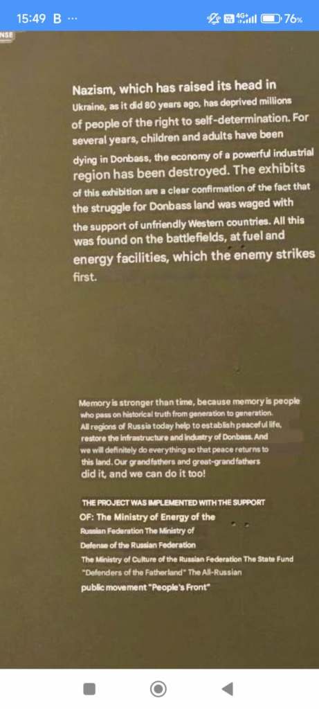 The Museum of the Great Patriotic War, with its colossal size, reminds you how big of a role the Second World War plays in shaping the Russian national identity today. I was not expecting to come across a section devoted to Ukraine and NATO in the museum, and I immediately started reading up on how these topics were presented. As you would expect, these sections were not in English but Russian – surprise surprise – and I used Google Translate for a quick translation. Here is a gist for you: